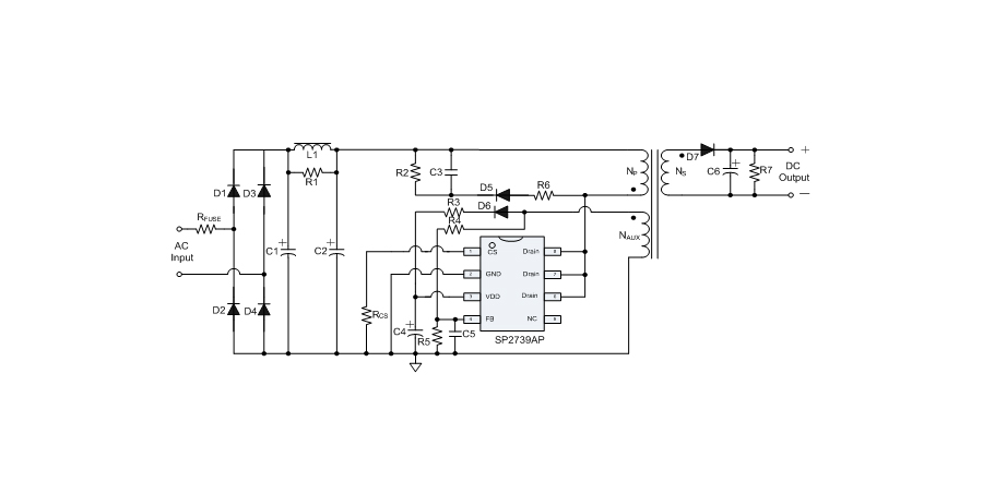 SP2739AP是一款性能優(yōu)異的原邊反饋控制電路,應用于中、小功率AC/DC充電器與適配器。控制電路使用原邊采樣技術進行精確的恒流、恒壓控制,可以省去一般應用中的光耦與TL431。
